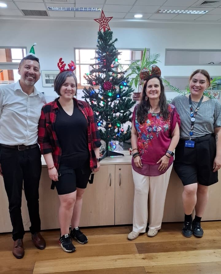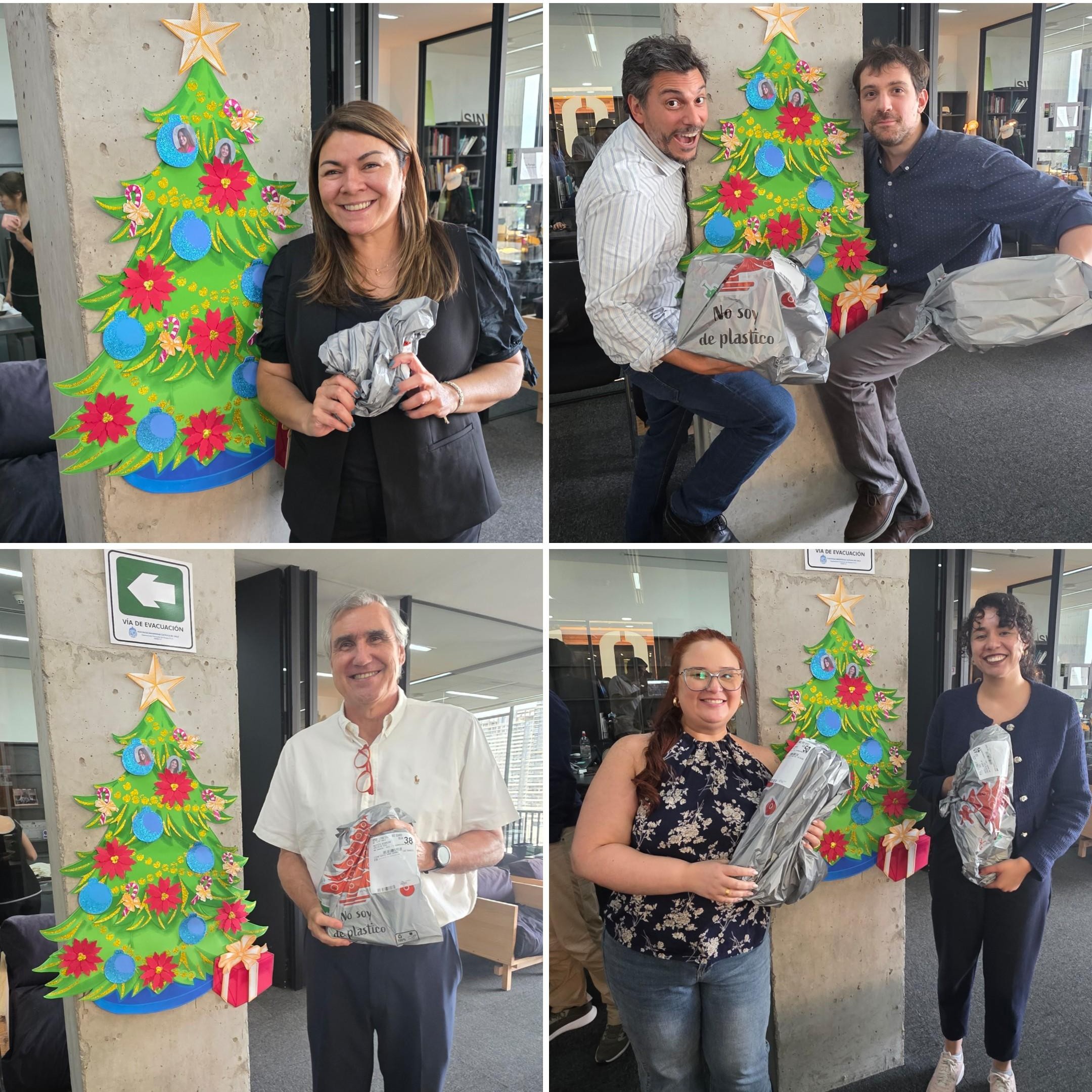 ¡Con mucha alegría y entusiasmo! Tres duendecillos mágicos del Centro de Innovación entregaron los regalos que la UC envío para sus funcionarios del piso 10